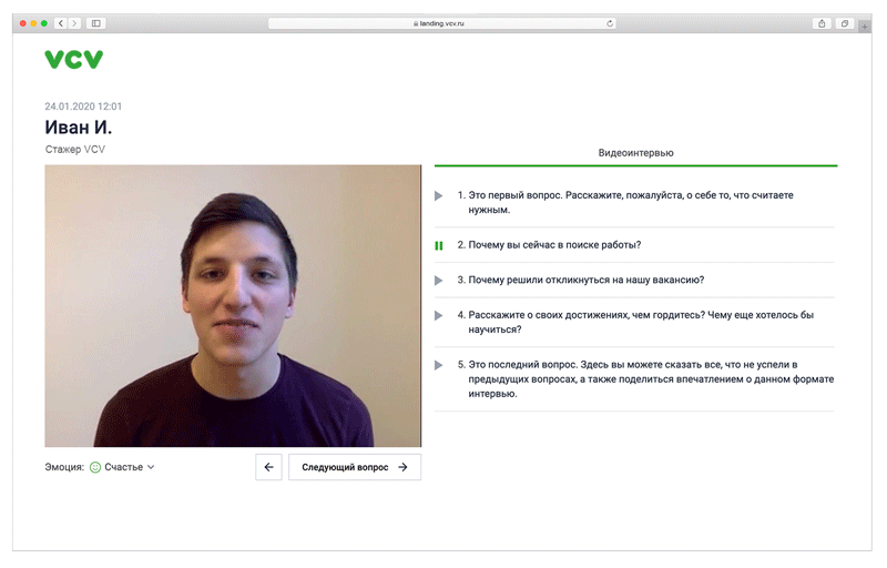 На лендинге кандидат знакомится с компанией, задачами и требованиями. Можно откликнуться с любого устройства и перейти к этапам отбора сразу или позже - кандидата вы уже не потеряете. Система сохранит все контактные данные и напомнит соискателю письмом, что нужно завершить отправку отклика.